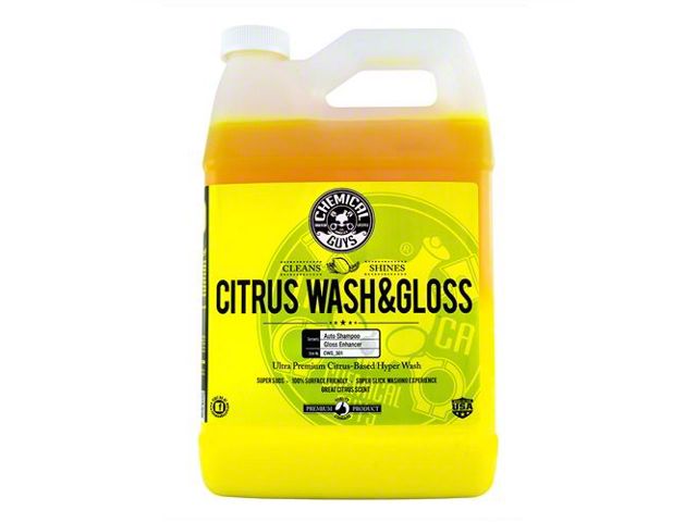 Deep Clean Shine Boost. The Chemical Guys Citrus Wash and Gloss Concentrated Ultra Premium Hyper Wash and Gloss (1-Gallon) is a professional-grade car wash soap designed to deliver a high-gloss finish while providing deep cleaning. This powerful formula lifts away dirt, grime, and road film, leaving behind a radiant shine. Ideal for enthusiasts and professionals alike, it’s formulated to preserve existing wax and sealant protection.