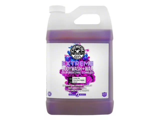 Wash and Wax at the Same Time. Instead of using separate car shampoo and a waxing agent, purchase this Chemical Guys Extreme Body Wash Plus Wax; 1-Gallon. As you wash your vehicle and dry it off, your vehicle will not be only clean but also gleaming like a brand-new vehicle. By using this product, you’ll be able to restore your vehicle’s clean look while enjoying more vibrant paintwork.