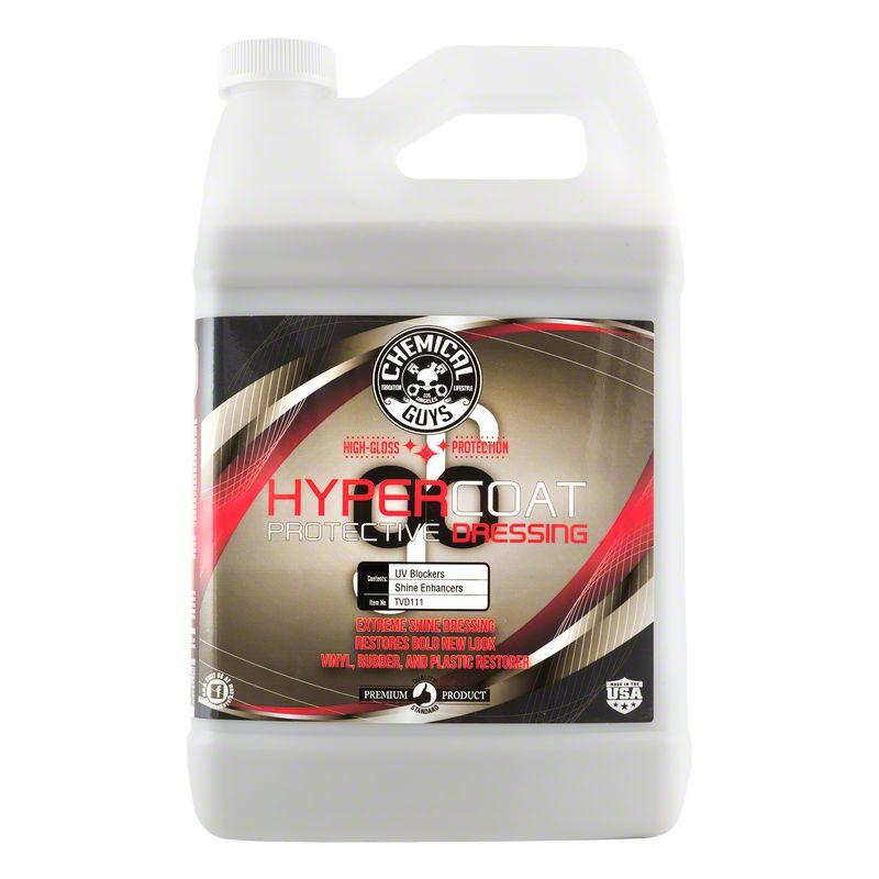 Water-Based Formula. Its water-based formula is safe to use on any surface and is shielded from harmful UV rays, ensuring that it retains its high-gloss finish for a long time. The Chemical Guys G6 Hypercoat High Gloss Dressing comes in a 1-gallon volume, making it a great value for any car enthusiast.