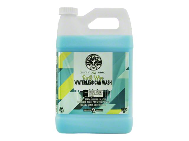 Clean Your Vehicle Without Water. If you're in a place where you don't have access to a garden hose and water, then use this Chemical Guys Swift Wipe Complete Waterless Car Wash Easy Spray and Wipe Formula; 1-Gallon to clean your vehicle. This spray product allows you to wash your vehicle without using any drop of water. As long as you have a rag to use with the spray product, you can clean your vehicle any time you want. What's more, this easy spray makes your vehicle shine and leaves a non-stick UV protective coating.