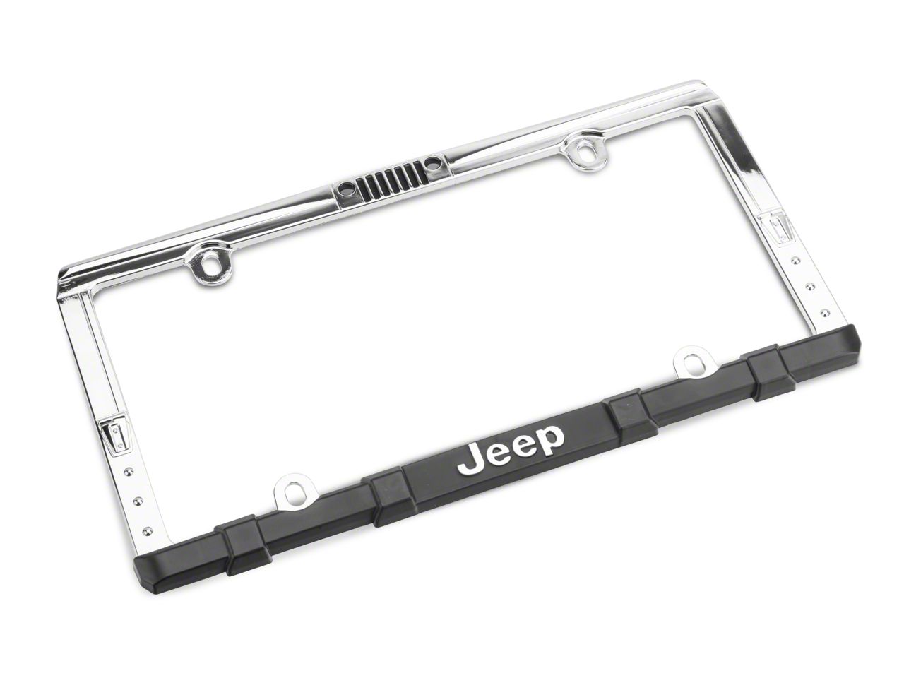 Application. This officially licensed Jeep CJ and Wrangler Grille License Plate Frame with Keychain and Decal is designed to fit all vehicles with a standard 12 x 6-inch license plate.