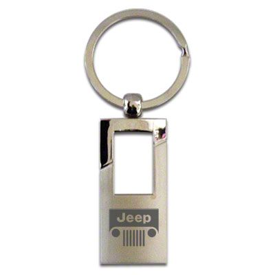 A step up from the ordinary keychains, this one would make a welcomed gift. It's elegant jewelers quality engraved, with a nice luxurious look and feel (Will even look good covered in mud and dust out on the trail.) It features a silver polished chrome finish with a laser engraved Jeep logo and Jeep grille. The keyring measures a full 1.5" diameter (plenty of room for lots of keys) and the fob is 1" by 2.5" with the rectangular cut out. This keychain is both nice looking and functional!