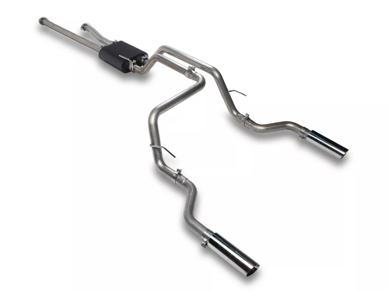 Quality Construction. C&L proudly manufactures their Cat-Back Exhaust systems from mandrel-bent, 2.5-inch diameter, premium grade, 409 stainless steel tubing for excellent exhaust flow and enduring corrosion resistance. This system features a chambered muffler and includes a pair of polished, 304 stainless steel double rolled exhaust tips.