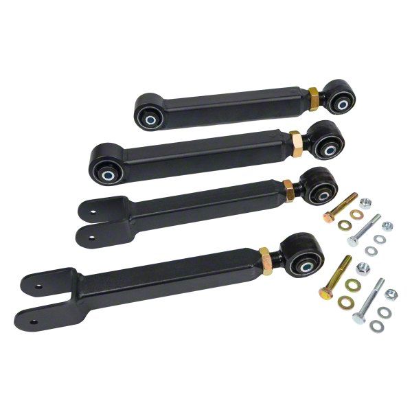 Better bushings, no cheap poly bushings here. Quality GIIRO Joints To Isolate Road Noise & Vibration. Pressed into a 5/16 thick housing for years of maintenance free, squeak free use. The Giiro Joint is a dual durometer, self centering joint, that is maintenance free.The outside part of the bushing is softer, to isolate road noise and vibrations and allow the bushing to articulate. It has 13.3 degree of movement in each direction, or 26.6 degrees combined per bushing. Since we use these bushing combined with a narrow series forged johnny joint which has 40 degrees of misalinment, you have over 65 degrees of unrestricted movement. The inside area of the bushing is harder and teflon infused to act as a bearing surface for the center pin which is free to twist as the suspension moves up and down. Combined with our 1/4 wall tubing, premium tube insert, 5/16s thick welded housing and a forged adjuster, you have the Ultimate control arms available. And with our LIFETIME warranty, these are the best and last set of control arms you will need.
