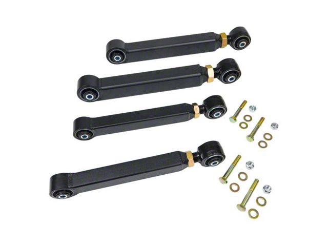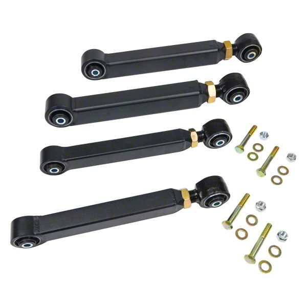 Better bushings, no cheap poly bushings here. Quality GIIRO Joints To Isolate Road Noise & Vibration. Pressed into a 5/16 thick housing for years of maintenance free, squeak free use. The Giiro Joint is a dual durometer, self centering joint, that is maintenance free.The outside part of the bushing is softer, to isolate road noise and vibrations and allow the bushing to articulate. It has 13.3 degree of movement in each direction, or 26.6 degrees combined per bushing. Since we use these bushing combined with a narrow series forged johnny joint which has 40 degrees of misalinment, you have over 65 degrees of unrestricted movement. The inside area of the bushing is harder and teflon infused to act as a bearing surface for the center pin which is free to twist as the suspension moves up and down. Combined with our 1/4 wall tubing, premium tube insert, 5/16s thick welded housing and a forged adjuster, you have the Ultimate control arms available. And with our LIFETIME warranty, these are the best and last set of control arms you will need.