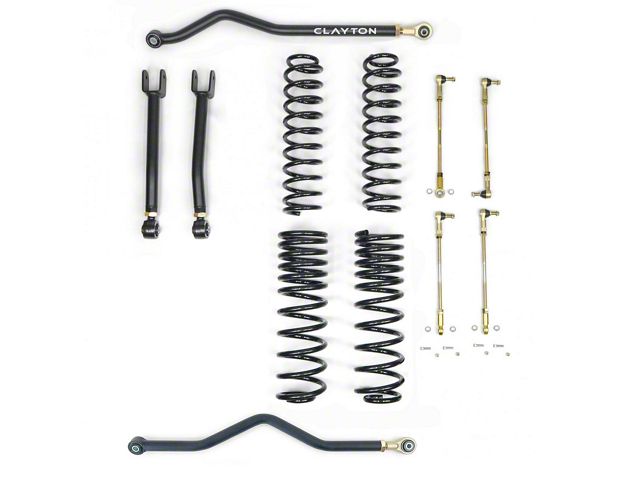 Fully Adjustable. Elevate your Jeep Gladiator JT's performance with the Clayton Off Road 1.50-Inch Ride Right+ Suspension Lift Kit. This comprehensive kit includes 2 fully adjustable control arms and an adjustable front track bar, enhancing your vehicle's stability and off-road capabilities.