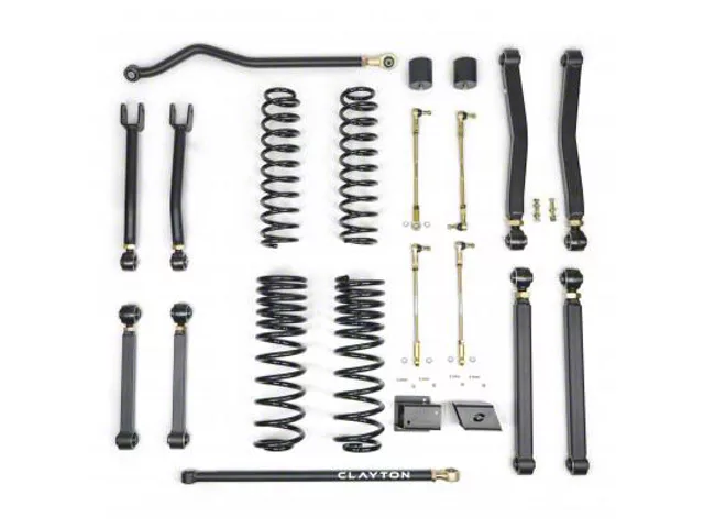 Optimized Driving. Get a stronger look for your Jeep Gladiator with this Clayton Off-Road 2.50-Inch Overland Plus Suspension Lift Kit. Offering an increased height of 2.5 inches, it features a strong look that provides you with greater clearance, and axle reinforcement that will boost your vehicle's ground clearance and stability, improving your driving experience and giving you space for taking on larger wheels.