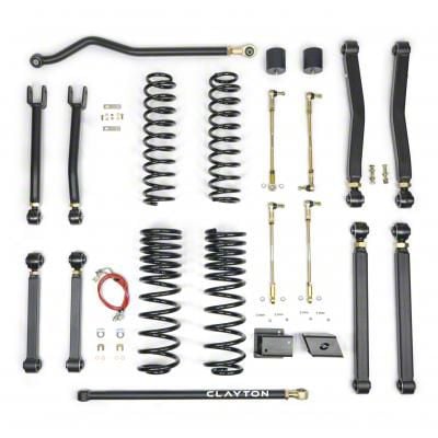 Clayton Off-Road 3.50-Inch Overland Plus Suspension Lift Kit. The Clayton Off-Road 3.50-Inch Overland Plus Suspension Lift Kit is a great aftermarket product with 8 fully-adjustable control arms. With its Giiro Joints, it makes the product maintenance-free. All of the joints are free pivoting, self-centering and is even silent during operation.