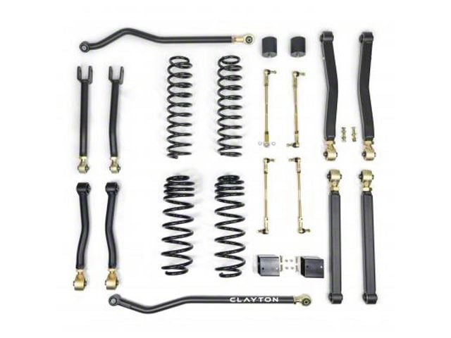 Substantial Lift Performance. Upgrade your Jeep Wrangler JL's off-road capabilities with the Clayton Off Road 2.50-Inch Premium Suspension Lift Kit. This top-tier lift kit is designed for Jeep enthusiasts who seek exceptional performance, reliability, and a superior ride quality on both off-road trails and city streets. By lifting your ride, this kit allows for the installation of larger tires, further enhancing its off-road capabilities. The increased ground clearance and improved suspension articulation facilitate a more adventurous off-roading experience.