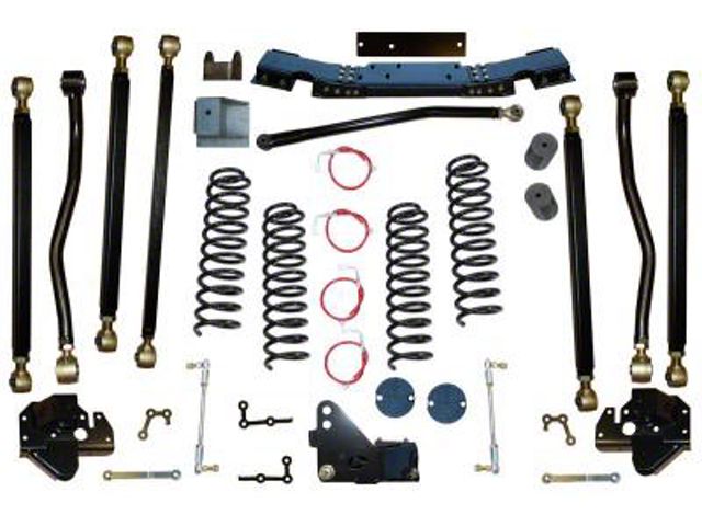 Improved Performance. Made for the Jeep Wrangler JK models, this Clayton Off Road Pro Series Suspension Lift Kit comes in a glossy black and light blue finish. Built as a 3-link long arm model giving a solid lift of 4.50 inches, this suspension lift kit offers improved geometry and dependability leading to better ride quality and comfort. This kit includes forged Johnny joints, GIIRO joints, a 3-piece crossmembers, a 3-link front upper arm, and rear frame brackets.
