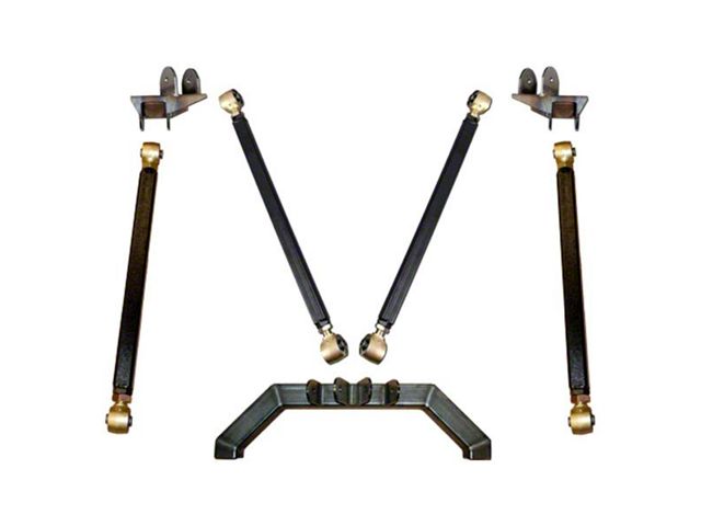 Description. Clayton Off Road Inc. long arm upgrade kits are perfect for anyone who has a lifted Jeep, and is looking for that next step. What our long arm upgrade kits are intended for is anyone who wants to upgrade their current lift kit to a high quality long arm kit. This pro series rear half only kit comes with rear frame brackets, a 4 link axle truss and upper and lower double adjustable control arms. Whether you have a short arm kit and just hate how it rides, or a competitors long arm kit that is falling apart, this kit will solve all your problems. Any long arm kit will provide better geometry by decreasing the angles on the lower arms. This greatly helps with ride quality. The length of the lower arms, also helps with flex and climbing ability off road. Where our kits rises above the rest is in the attention to details. We use Currie Johnny Joints which provide the flex everyone is looking for. Currie Narrow Johnny Joints offer 40 degrees of unrestricted movement in any direction as compared to 22 degrees on a common heim joint. Another advantages between a johnny joint and a heim joint are in the actual components they are built from. A heim joint has a metal spherical ball, usually a teflon sleave, and is encased in metal housing. This provides little if any shock absorption. A johnny joint is similar however that metal spherical ball is encased in a high density "tough 88" urethane that allows for some give. Between the improved geometry, quality johnny joints and our lifetime guaranteed control arms, this is the best and last lift kit you will ever have to purchase.
