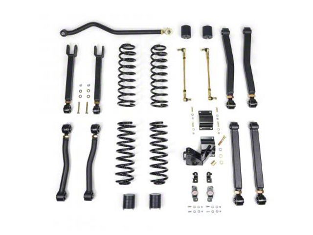 Premium-Quality Components. This suspension lift kit’s components are made of highly-durable materials that have been rigorously tested to ensure compatibility and long-lasting reliability. This kit includes 8 fully adjustable control arms, maintenance-free Giiro joint bushings, dual durometer, self-centering joints, premium adjustable front track bar, adjustable rear track bar, front adjustable sway bar links, rear adjustable sway bar links, and front and rear bump stops.
