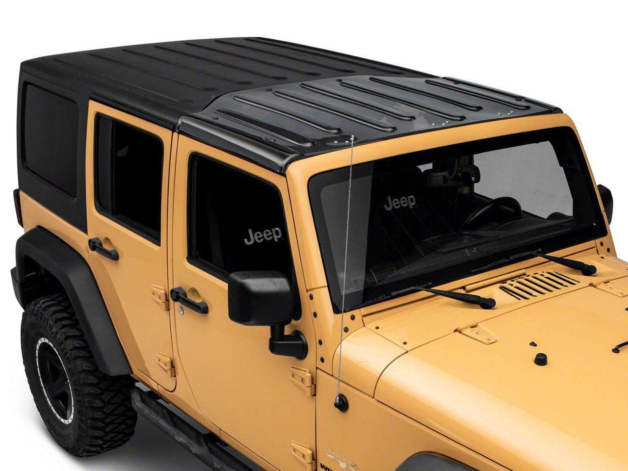 Premium Construction. To match your Jeep’s aggressive off-road drives, this transparent top is made of military-grade polycarbonate. This is the same material used in making jet fighter canopies, so you can be assured of its strength and quality. Furthermore, this top is designed to be UV-resistant, preventing its color from fading or yellowing.