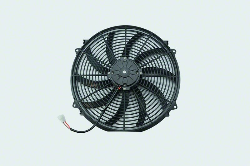 Strong Airflow. Made for a universal fit, this COLD-CASE Radiators Electric Radiator Fan (14-Inch) is a matte black model with 10 blades and a diameter of 16 inches. Drawing 6.84 amperes on average, this fan has an airflow of 2500 CFM and includes a wiring harness.