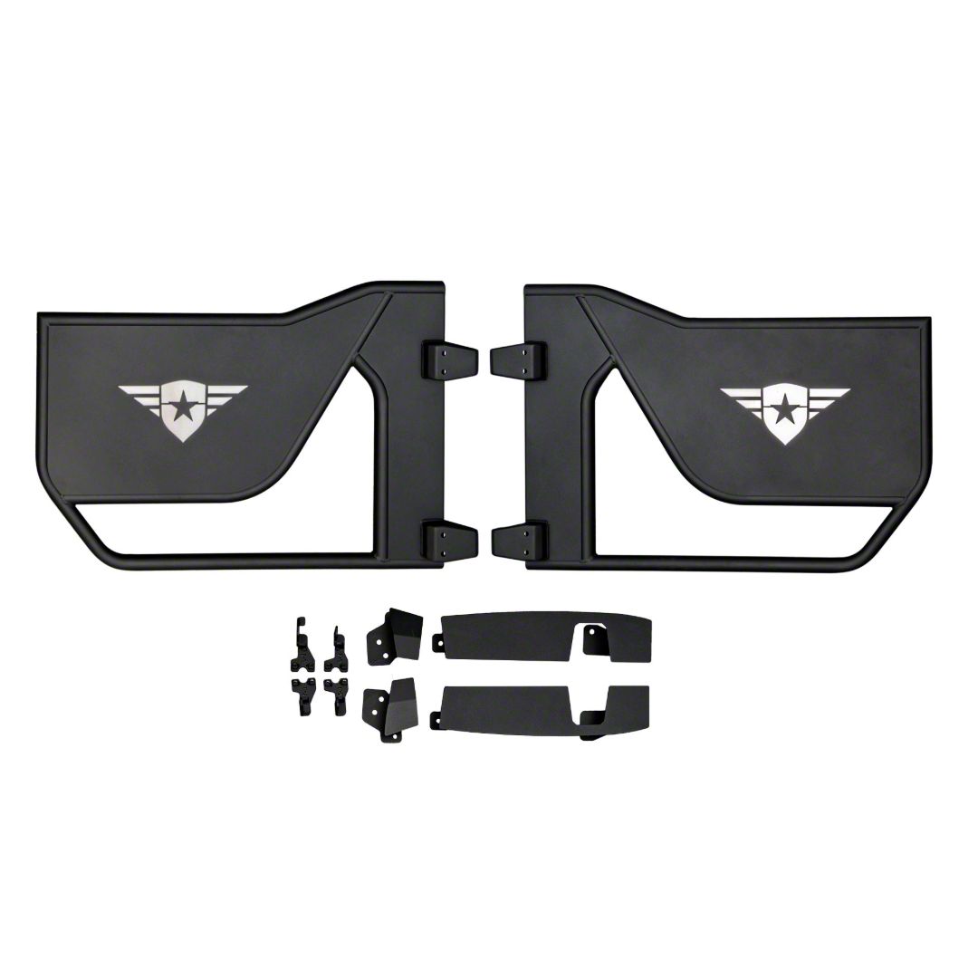 Built to Handle Real Terrain Without Compromise. Crafted from welded steel tubing and finished in durable black powder coat, these doors resist impacts, corrosion, and repeated abuse from brush and trail obstacles. The fitment matches factory mounting points, and they retain use of OE-style door latches for hassle-free operation and a secure close.