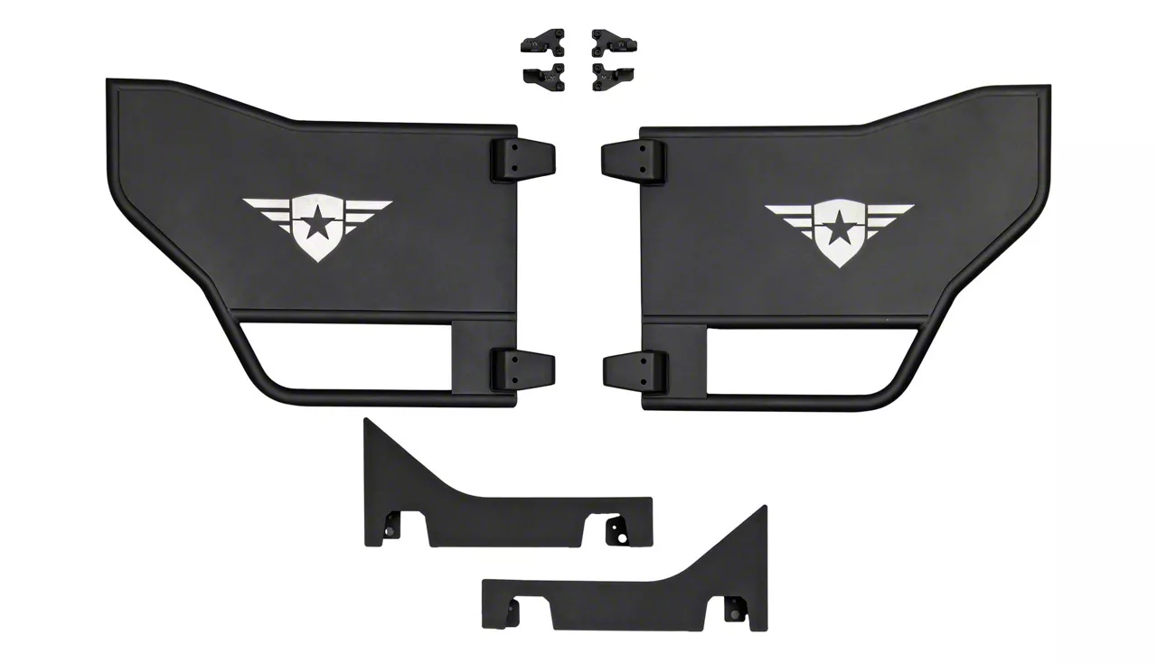 Installation. What's more? These tube doors include all necessary installation hardware for a straightforward, hassle-free setup. Designed for direct bolt-on installation, they require no drilling, modification, or cutting, ensuring convenience for Jeep enthusiasts.
