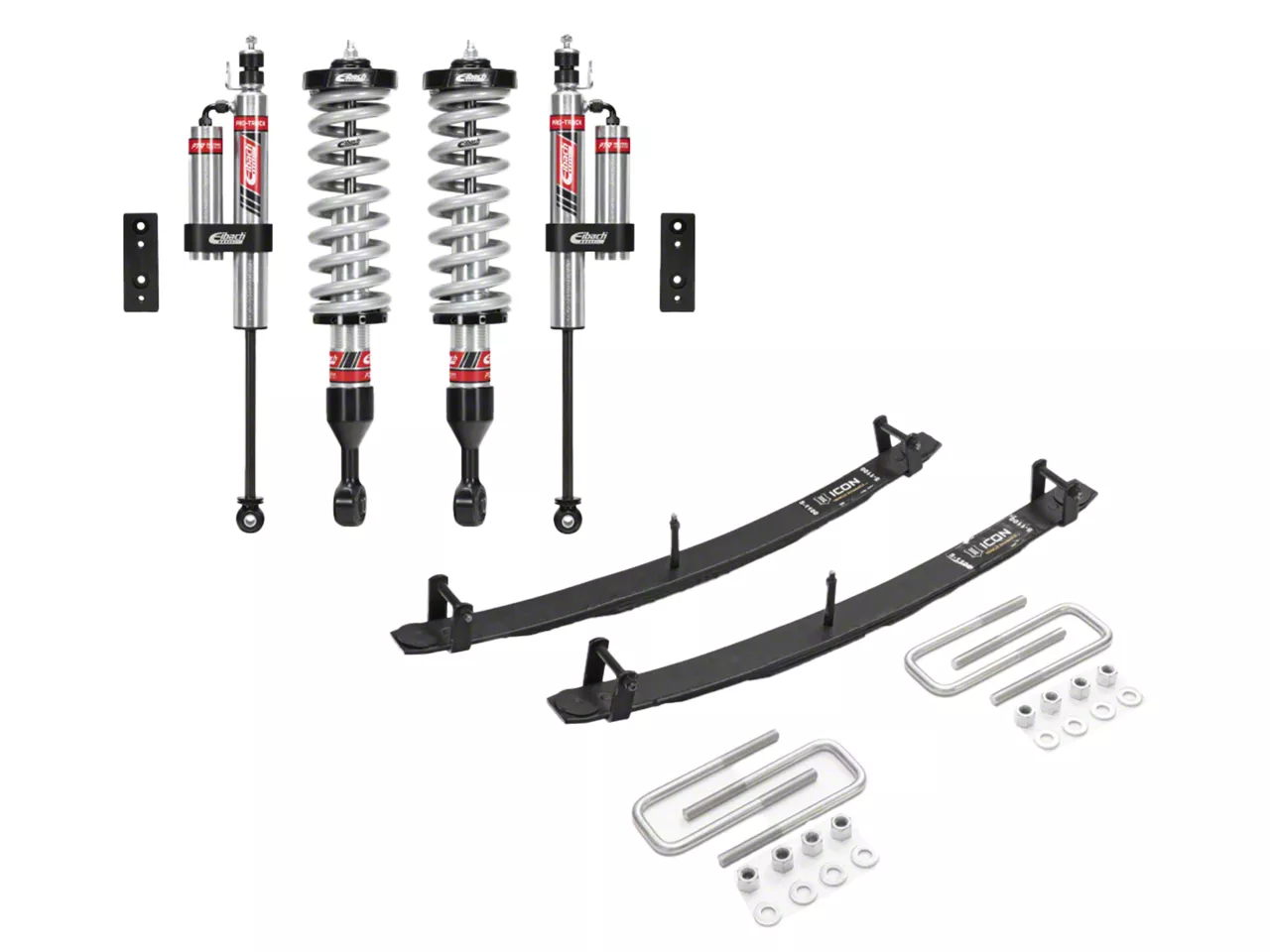 Combo Kit. Elevate your Tacoma’s handling performance for both on and off-road driving with this Eibach Stage 2R Pro-Truck Coil-Over and ICON Vehicle Dynamics 1.50-Inch Add-A-Leaf Combo Kit. This kit is designed to lift your front by 2.50 inches and your rear by 1.50 inches. In doing so, this kit will level off your truck’s front to its rear, giving it a more aggressive stance. Best of all, this kit’s included components deliver outstanding handling performance to you can take on any adventure with confidence.