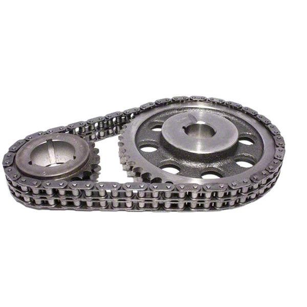 Heavy-duty, heat-treated double row timing chain; comes complete with gears and chain