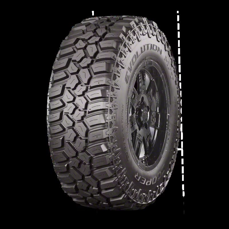 Cooper Evolution M/T Tire – Rugged Mud-Terrain Capability with Road-Friendly HandlingEngineered for off-road strength and everyday driveability, the Cooper Evolution M/T is a studdable mud-terrain tire built to deliver exceptional traction in mud, gravel, rocks, and snow. Ideal for lifted trucks, Jeeps, and heavy-duty ¾-ton to 1-ton vehicles, it features bold tread blocks and aggressive shoulder scoops that bite into loose terrain for enhanced grip.The tire’s self-cleaning tread design continuously ejects mud and debris, while reinforced sidewalls and stone barriers help prevent cuts and punctures. A silica-rich compound adds flexibility in cold conditions, resists chipping, and improves traction in wet environments.Despite its aggressive off-road design, the Evolution M/T provides a more refined on-road experience than many traditional mud tires. It offers stable handling and reduced road noise, making it a practical option for all-season performance, including light snow and ice when equipped with studs.Key BenefitsExcellent traction in mud, gravel, rocks, and snowSelf-cleaning tread that maintains grip and clears debrisReinforced construction with stone ejectors for added durabilityStuddable for improved traction in winter conditionsQuieter, smoother on-road ride for everyday useIdeal ForRugged terrain, job sites, mountain roads, and winter off-road excursions—anywhere you need dependable traction and durability without sacrificing ride comfort.
