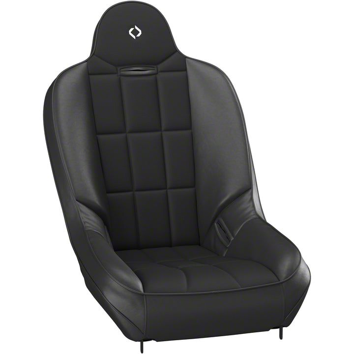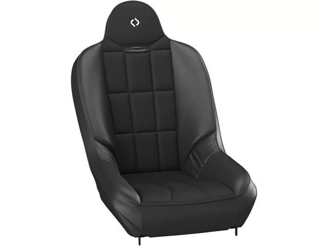 Quality and Design. This seat has heavy-duty black vinyl/cloth material to ensure exceptional durability. It was designed with the capacity to bolt to a roll cage with the integration of four vertical tabs at the bottom of the seat.