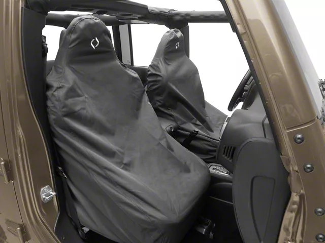 Inexpensive Solution. This Seat Saver is designed using poly canvas fabrics which come with built-in UV and mildew protection. It is covered with a durable. water-repellent charcoal black finish. In vehicles that are usually exposed to the elements, like your Jeep, this Seat Saver is an economical way to save your seats when found in those unexpected storms. Use this durable seat cover to prolong the life of your seats.