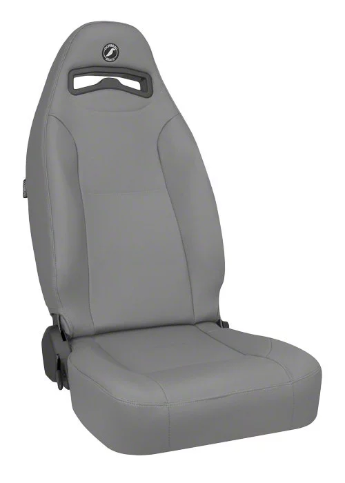 Function. The Corbeau Moab Reclining Seat in Gray Vinyl is an ideal replacement for your jeep's old, saggy or worn-out seat. It is constructed with high-density injection-molded foam that offers cushioned support, while retaining its shape for years. This seat uses the Corbeau reclining technology to let you adjust the seating position to upright just with a lift of the lever. Its well-defined bolsters not only reduce body shifting and fatigue, but also provide excellent support for enhanced driving experience. Harness slots accept a 3-point or a 4-point harness belt and a submarine slot can be added to the seat base for using a 5-point harness belt. This reclining seat features a map pocket at the back to stash your essentials.