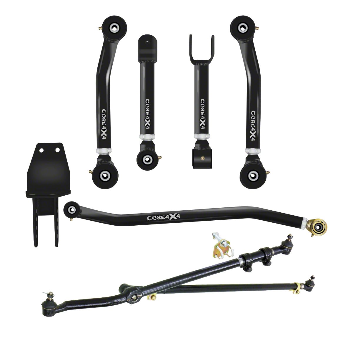 Ultimate Control for a Superior Ride. Elevate your driving experience with the Core 4x4 Cruise Series Adjustable Front Upper and Lower Control Arm, Track Bar and Steering Kit. This comprehensive package is engineered to enhance your vehicle's alignment and stability, making it perfect for custom suspension setups. Whether navigating rugged off-road trails or cruising on the highway, this kit ensures improved ride quality and responsive handling. The adjustable design allows for precise tuning, catering to your unique driving demands and ensuring optimal performance in various terrain conditions.