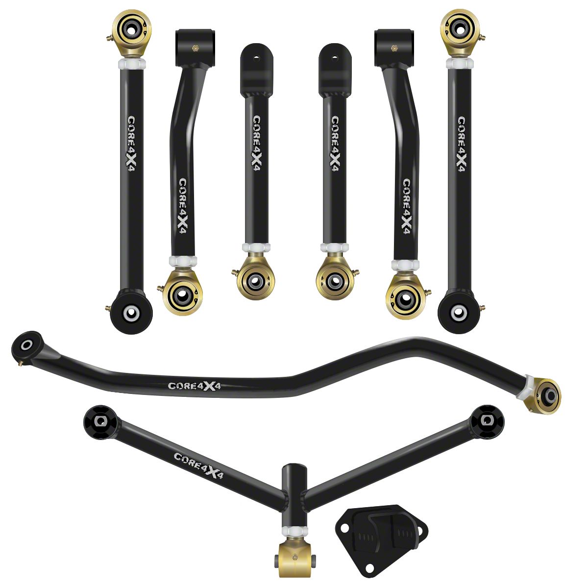 Enhanced Vehicle Performance and Versatility. Upgrade your vehicle's performance with the Core 4x4 Camp Series Front and Rear Upper and Lower Control Arm, Rear Upper A-Arm and Track Bar Kit, designed for both on-road comfort and off-road resilience. This complete suspension upgrade set transforms your driving experience by providing improved control and stability, no matter the terrain. Whether cruising on highways or tackling rugged trails, this product ensures optimal vehicle alignment across various lift heights, enhancing your vehicle's agility and response. It's an ideal choice for drivers seeking a balanced blend of comfort and toughness in their automotive adventures.