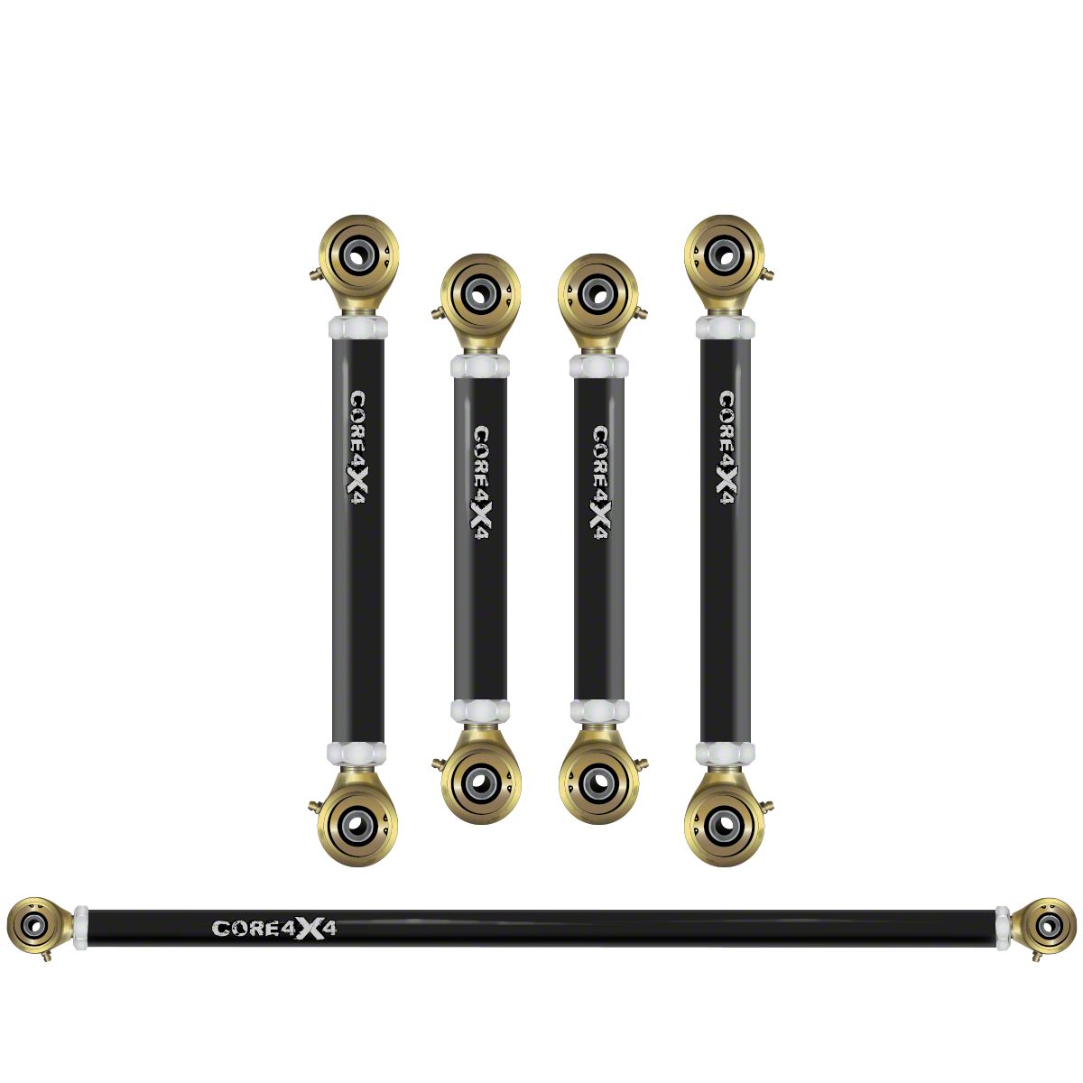 Enhanced Suspension Performance. Upgrade your Jeep Grand Cherokee WK with the Core 4x4 Crawl Series Adjustable Rear Upper and Lower Control Arm and Track Bar Kit. This kit is specifically designed to improve suspension control, handling, and stability, making it an excellent choice for off-road enthusiasts or anyone looking to improve their vehicle's ride quality. The adjustable components ensure precise alignment and fitment, offering better traction and reduced wear on your suspension system.