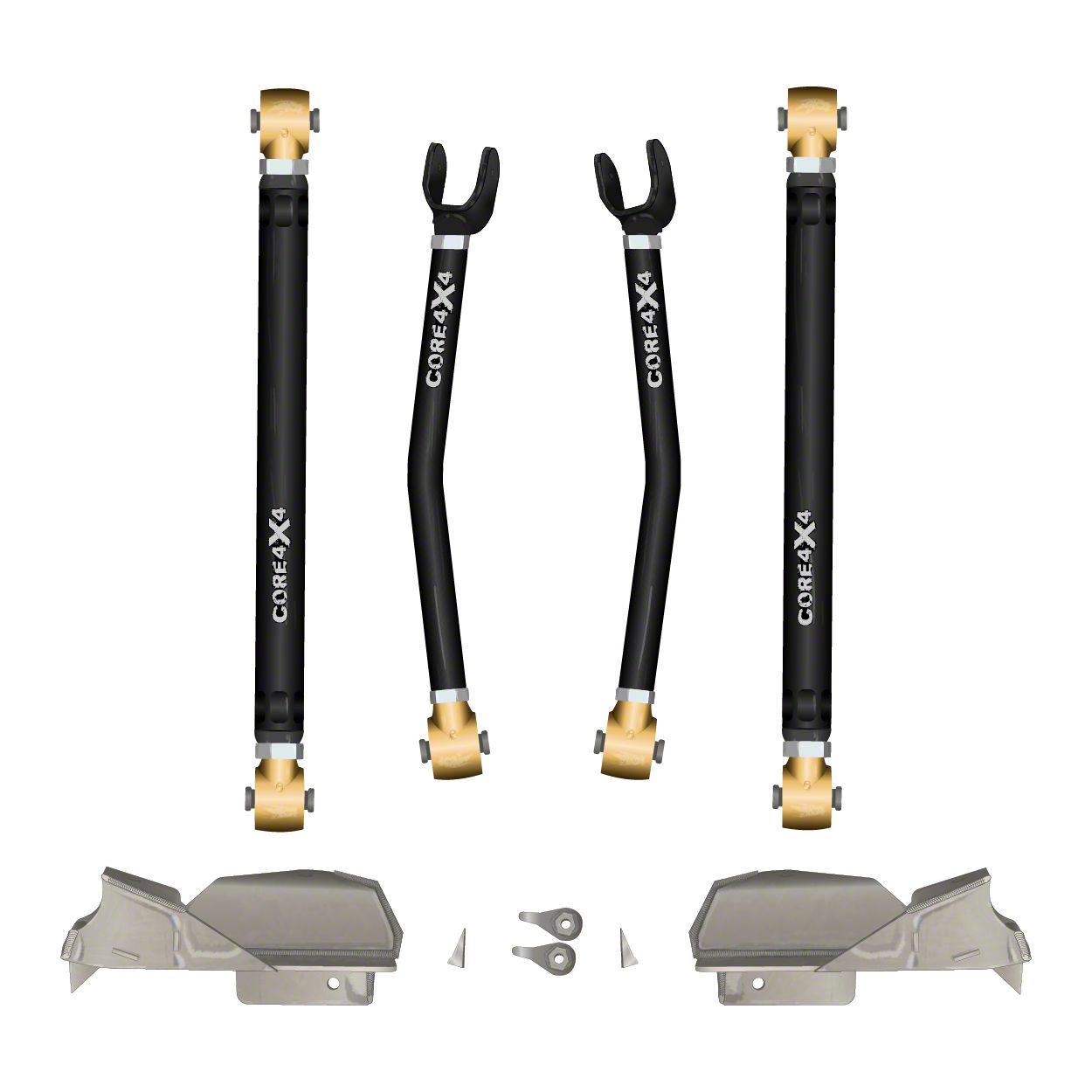 Installation. This Core 4x4 Long Arm Kit is designed as a direct replacement, fitting securely onto compatible Jeep Wrangler JK models. With its bolt-on design and included brackets, installation is straightforward, providing a stable and reliable setup without requiring extensive modifications.