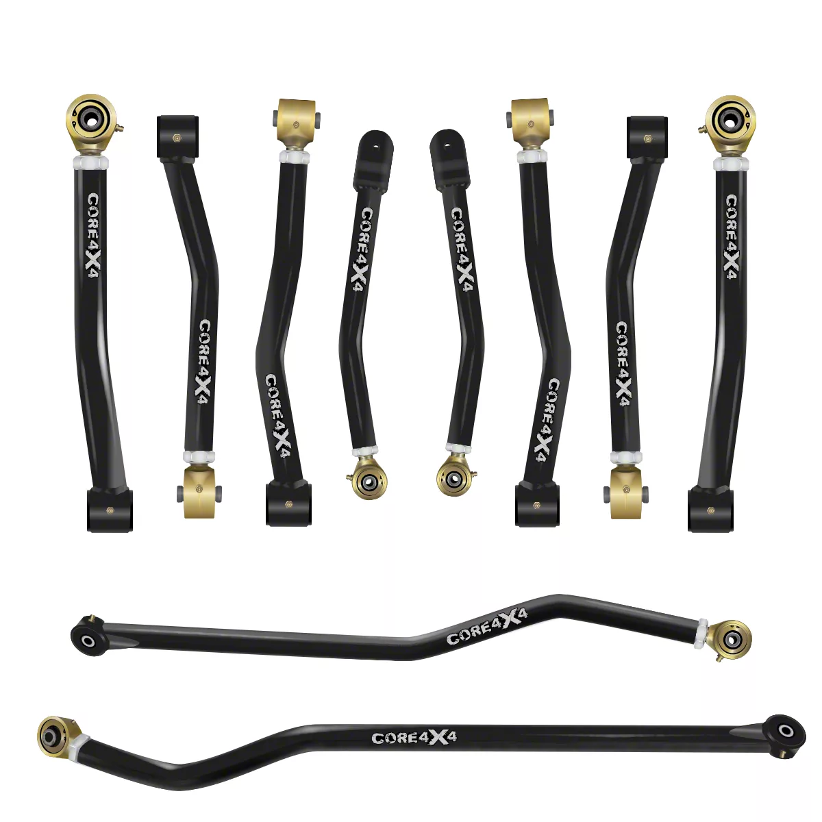 Enhanced Vehicle Suspension. The Core 4x4 Camp Series Upper and Lower Control Arm and Track Bar Kit is specifically designed for 2018-2026 Jeep Wrangler JL models. This all-inclusive, 10-piece kit includes 4 upper control arms, 4 lower control arms, and 2 track bars, all adjustable to accommodate vehicles with a lift ranging from 0 to 6 inches. Crafted with Johnny Joints and tapered polyurethane bushings, this kit enhances the vehicle's strength, durability, and flexibility, improving both on-road comfort and off-road performance.