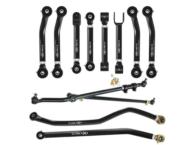 Improved Performance. Made to improve your Jeep Wrangler TJ’s control and handling, this Core 4x4 Cruise Series Control Kit comes in a polished black finish. Built in the USA, this is an all-in-one kit that includes upper and lower control arms, track bars, and a heavy-duty Rock Jock Currectlync Steering kit. Compatible with vehicles with 0 to 6 inches of lift, this kit offers improved handling, stability, and parts strength compared to stock parts.