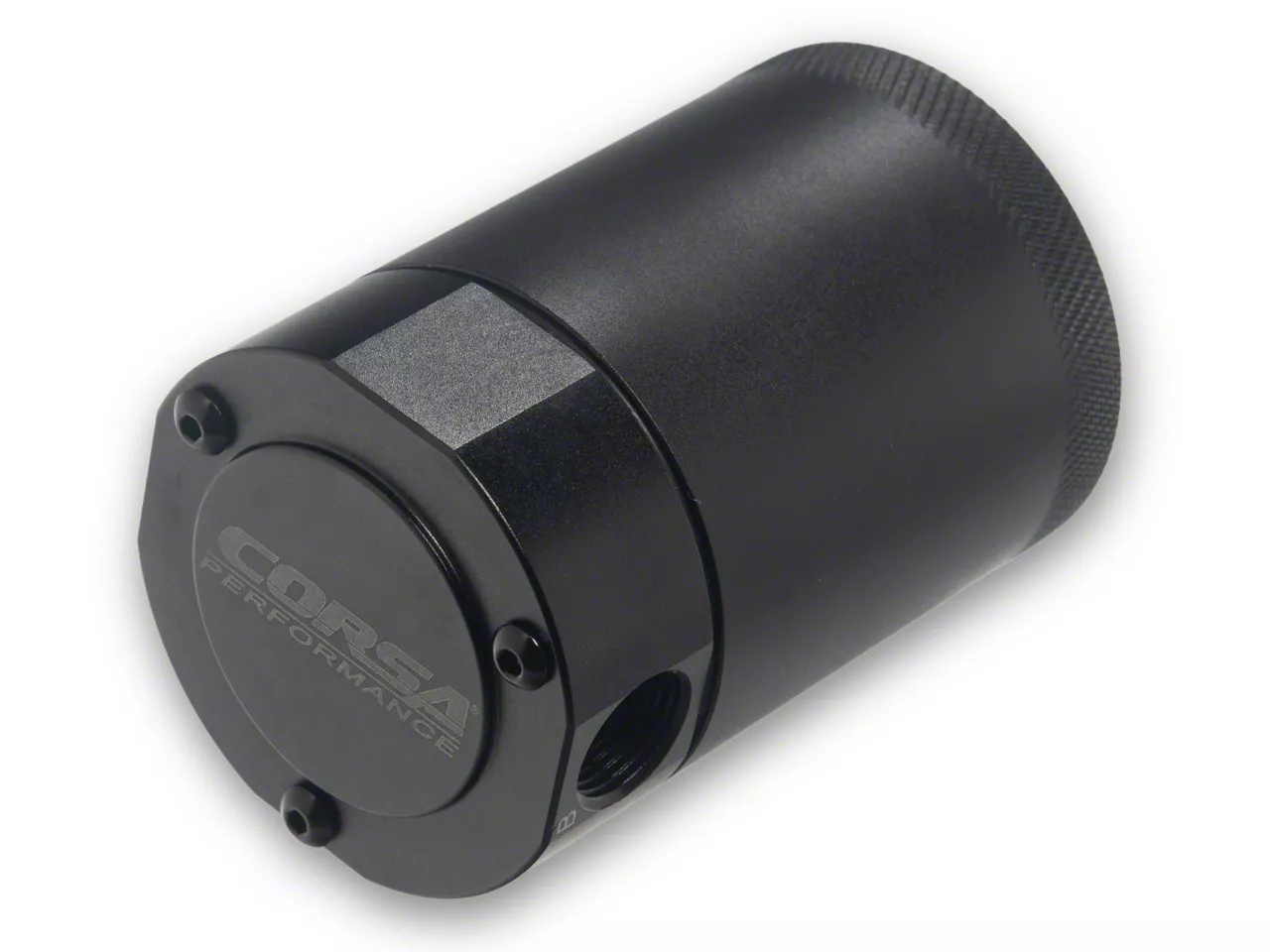 Premium Aluminum. Constructed from premium, lightweight billet aluminum, the Corsa Performance Oil Catch Can is both durable and visually appealing. Its sleek design complements any engine bay, adding a touch of style while providing essential protection.