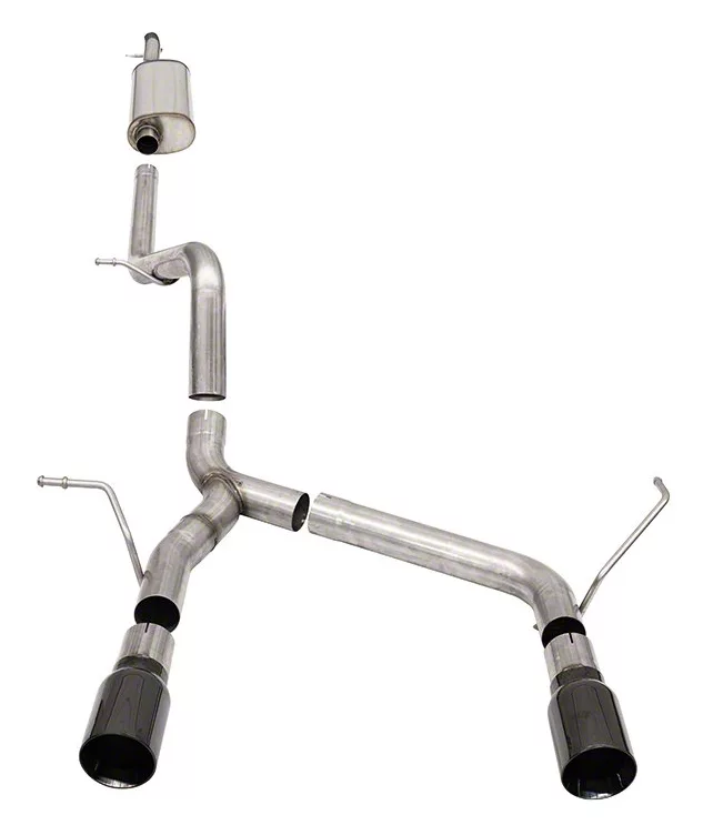 High-Quality Stainless Steel Build. Made out of 2.75-inch heavy-duty stainless steel tubing, this cat-back exhaust upgrade has the strength to withstand whatever the harsh driving conditions throw at it. It also comes with black powder-coated 4-inch diameter tips with an American flag design for added style.
