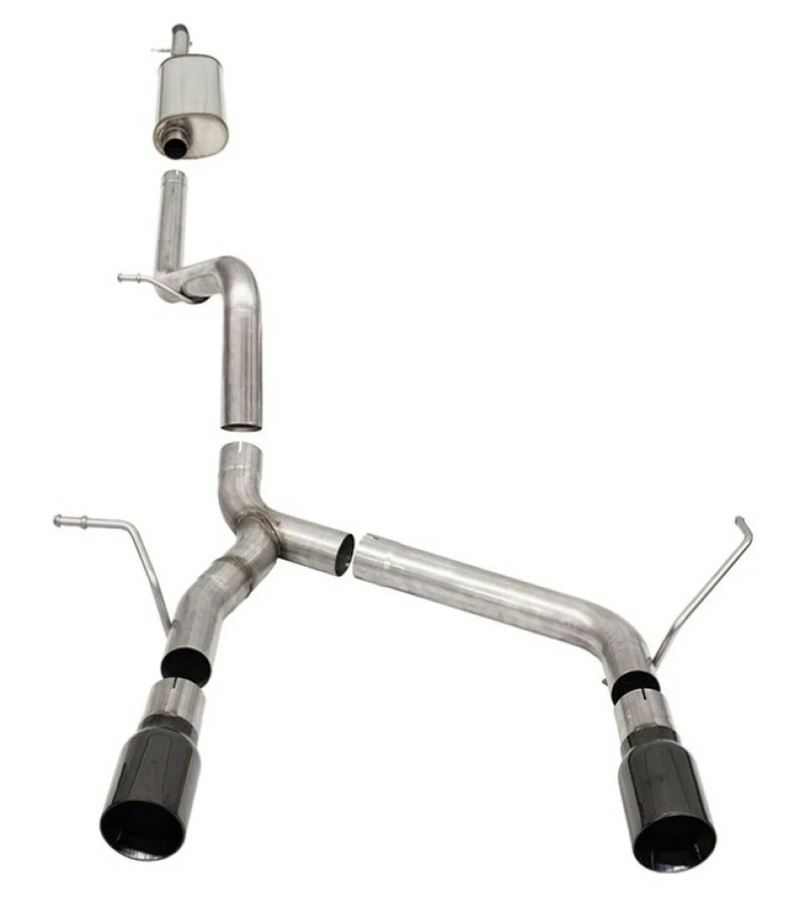 Increased Performance. Thanks to the Sport cat-back exhaust system’s mandrel-bent design, it offers a less-restrictive airflow than your stock component. This design feature makes the upgrade more efficient than its factory counterpart and is capable of pushing exhaust gasses at a higher and faster rate. This yields increased horsepower and torque numbers as a result.