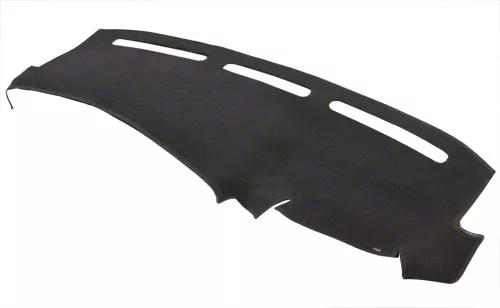 Construction and Appearance. Made from original carpet material, the cover offers a durable and attractive finish in black that complements your dashboard. It is custom patterned to the exact contours of your dashboard, with precise cutouts for vents and sensors, finished with matching edges for a sleek appearance.