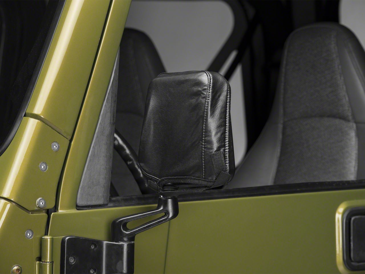 High-Quality Protection. Covercraft's Black Vinyl Colgan Mirror Bra is made to keep your 1987-2006 Jeep Wrangler from incurring damage from rocks and road debris alike. The mirror bra features UV-resistant, memory-fit fabric, which ensures a precise fit for maximum protection. The bra also features a flannel backing to guarantee that the fabric touching your Jeep's mirror paint is soft and won't do any damage itself. Similarly, the bra's tabs and hooks are reinforced then padded and covered in vinyl in order to prevent any scratches and keep your mirror looking as pristine as it did the day you bought your Jeep.