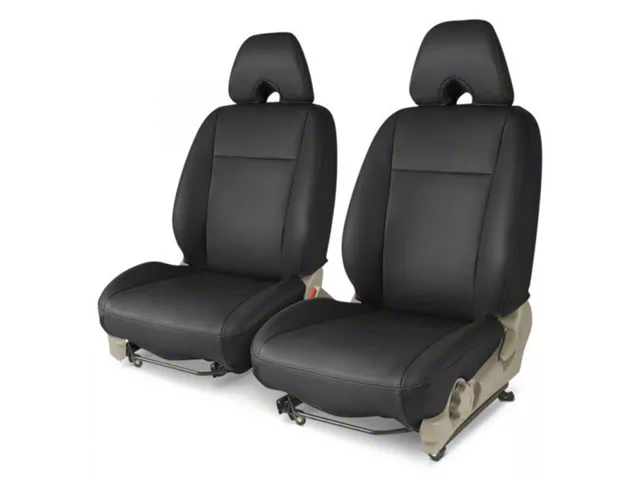 Reliable Seat Protection. Crafted with precision, these Covercraft Precision Fit Seat Covers Leatherette Custom Front Row Seat Covers; Black are tailored to fit your Jeep Wrangler JL 4-Door's front row seats flawlessly. The premium black leatherette material exudes a luxurious look and feel, elevating the interior of your vehicle to new heights. Not only do these seat covers enhance your Jeep's appearance, but they also provide excellent protection against everyday wear and tear. The durable leatherette material is resistant to stains, spills, fading, and UV damage, ensuring long-lasting performance. Whether you're facing muddy adventures or accidental spills, these seat covers will shield your seats from potential damage, making them ideal for off-road enthusiasts and daily drivers alike.