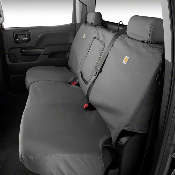 Hard-Wearing but Breathable Composition. Looking for a seat cover that can stand up to the rugged demands of your workweek? Look no further than the Covercraft SeatSaver Custom Second Row Seat Cover in Carhartt Gravel. This tough, hard-wearing seat cover is made from breathable Carhartt duck-weave fabric and features triple-stitched main seams for added strength and durability.