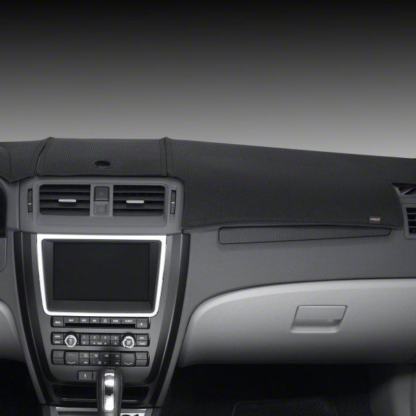Construction and Appearance. Crafted from premium-grade, smoke-colored warp-knit polyester-style fabric, the dash cover provides durability with a sleek, textured finish. It features precision-cut openings to accommodate vents and sensors, ensuring a clean, factory-finished appearance tailored specifically to the vehicle’s dash layout.