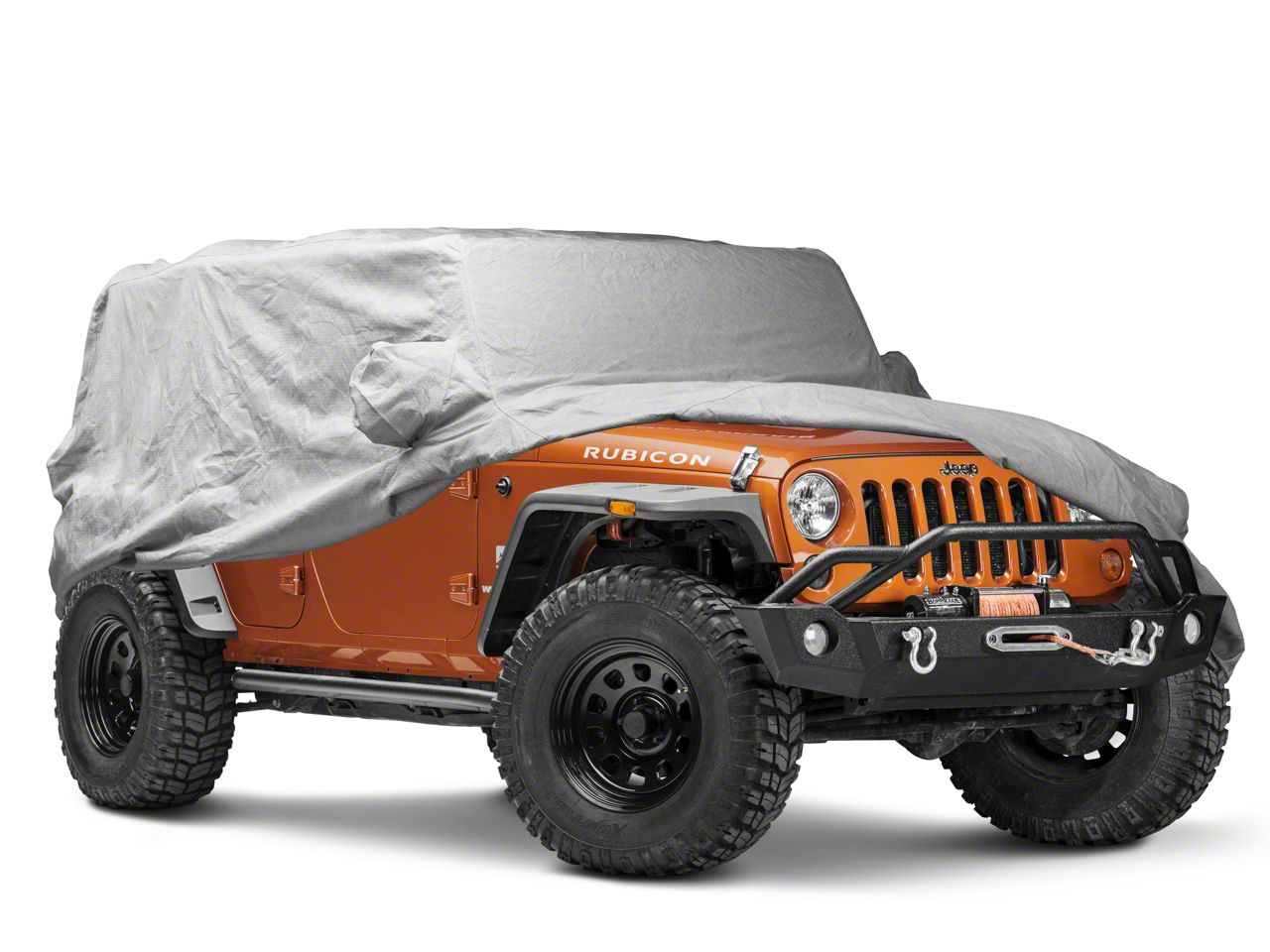 Keeps Your Wrangler Looking Its Best. Covercraft’s Premium Custom-Fit Car Cover is a high-tech, durable answer to the challenge of keeping your four-door Wrangler JK safe from dust, wind, weather, abrasion, damage, and unhelpful humans. The custom-fit cover holds your Jeep snug, defending it from harsh UV rays, damaging objects, and abusive behavior. And it helps to stop nefarious eyes from spying your Jeep, because out of sight means out of mind.