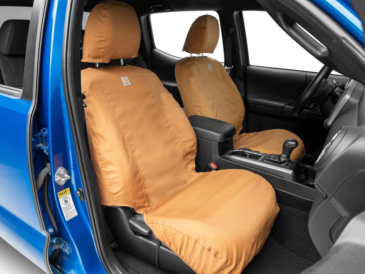Application. These Covercraft Carhartt SeatSaver Brown Front Seat Covers fit all 2014 to 2021 Toyota Tundra models with bucket seats.