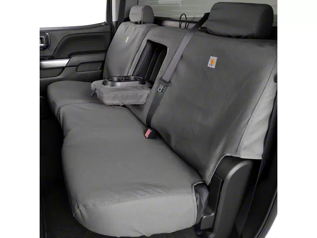 Stylish Custom Design. Protect your Double Cab Toyota Tundra’s second row seats by installing a set of Covercraft Gravel Carhartt SeatSaver Second Row Seat Covers. These premium seat covers wrap your truck’s seats in a comfortable fabric, while maintaining the seats’ mint condition. These Covers are also designed to retain their snug-fit and good looks even after years of constant rugged use.