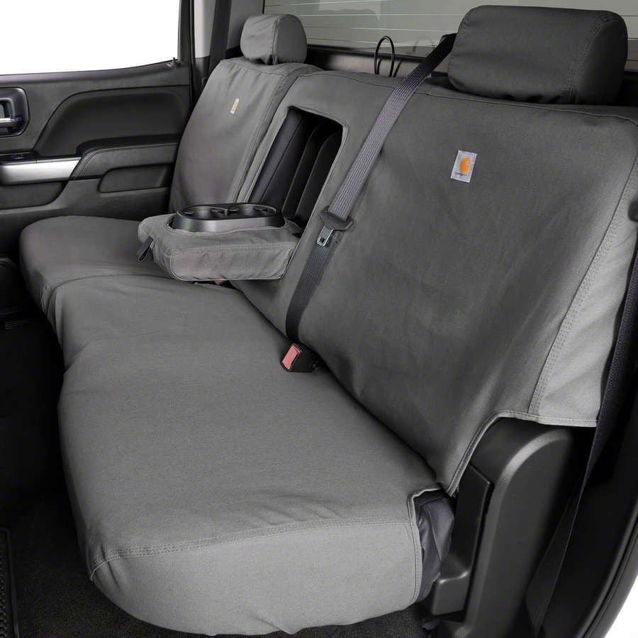 High Strength Quality. The Covercraft SeatSaver Custom Second Row Seat Cover is a durable and protective solution to keep your vehicle's seats looking and feeling their best. Crafted with tough polycotton material, this seat cover not only provides a rugged and stylish appearance with its Carhartt Gravel design but also offers exceptional resistance to wear and tear, making it ideal for those with active lifestyles or work vehicles. The cover is machine washable, ensuring easy maintenance and a fresh look even after the toughest adventures. Whether you're dealing with spills, stains, or the daily wear and tear of life on the road, this custom-fit seat cover helps keep your second-row seats in pristine condition while adding a touch of Carhartt's legendary durability to your vehicle's interior.