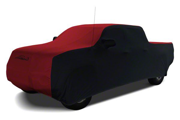 Description. Car Cover; Custom Vehicle Cover Satin Stretch; 2-Tone Black Sides Pure Red Center