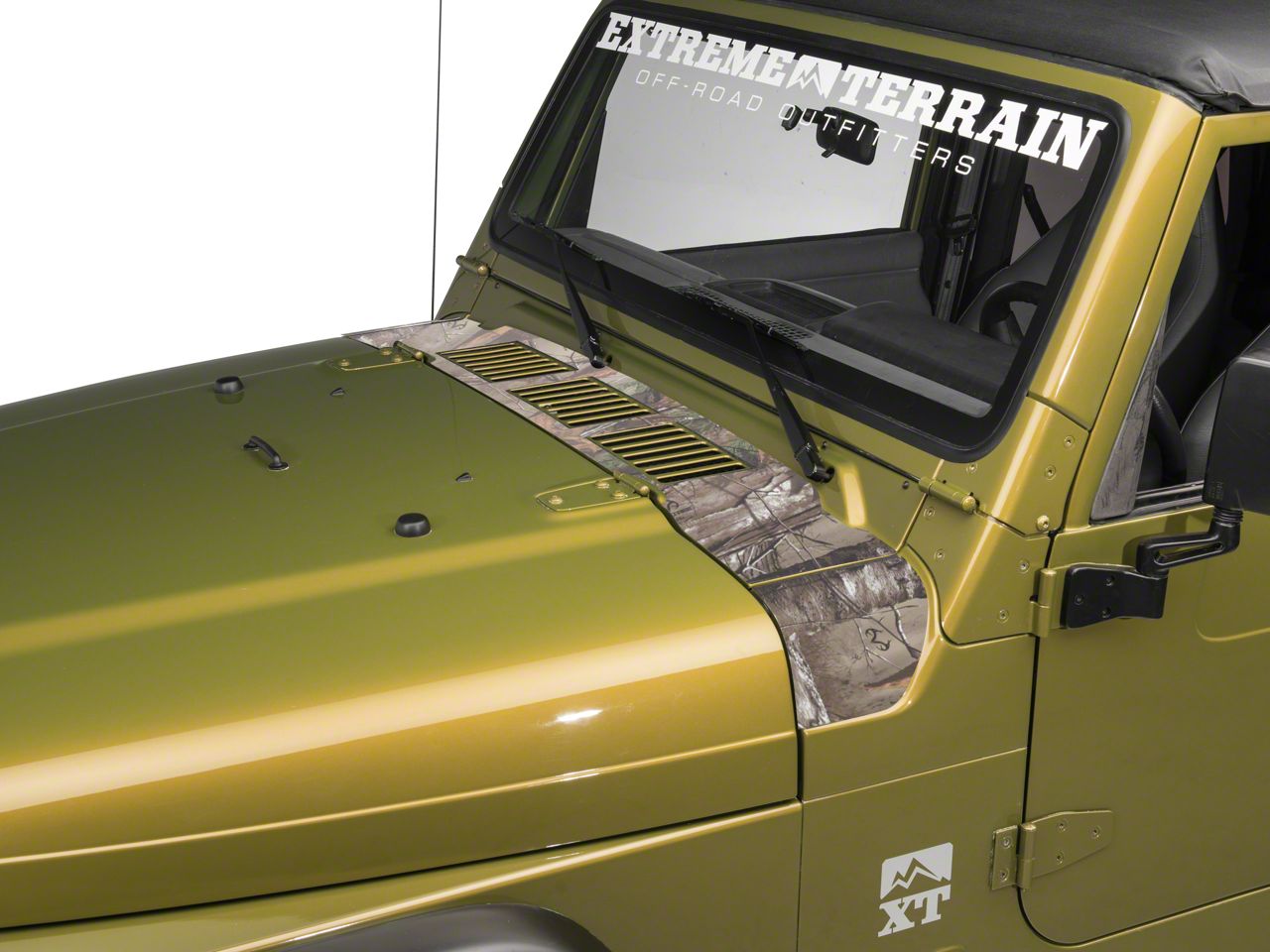 Application. This SEC10 Real Tree Camo Cowl decal is specifically designed to fit all 1997 to 2006 Jeep TJ Wrangler models.