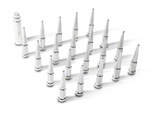 Securely Stylish. A perfect match for your wheels -- whether factory or custom -- you certainly won’t go wrong with the Coyote Chrome Spike Lug Nut Kit. Enhance the security on your Wrangler’s wheels with a set of lug nuts that puts equal value on style and security.