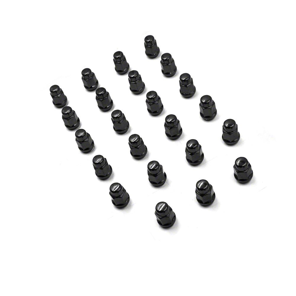 Secured and Sleek Driving. Reinforce your Wrangler's safety features and off-road style by using this Black Acorn Lug Nut Kit; 3/4-Inch; Set of 23 on your wheels. The bulge acorn design, supreme construction, and 14 mm x 1.50-inch thread pitch keep your tires securely attached to the hub. These fasteners also come in a black finish that enhances your Jeep’s powerful presence on and off the road.