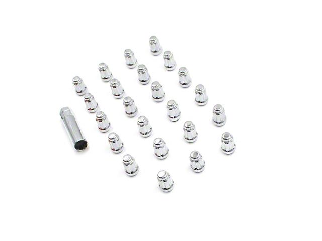 Application. The Coyote 14 mm x 1.50-Inch Chrome 6 Spline Lug Nut Kit is specifically designed to fit all 2018 to 2025 Jeep Wrangler JL models.