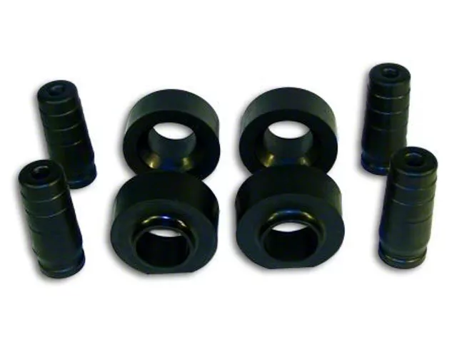 Durable Polyurethane Spacer Construction. The 1.75 inch Spacer Lift & Level Kit comprises front and rear polyurethane spacers and bump stops. With a maximum lift of 1.75 inches, it provides the perfect ride height for 31-33 inch tires and up to 35-inch options for regular on-road commuting. The spacers have been computer designed for precision while the proprietary polyurethane material formulation stands up to a variety of environments. This durable material provides a firm, yet responsive ride quality and resists degradation to retain consistent performance, mile after mile.
